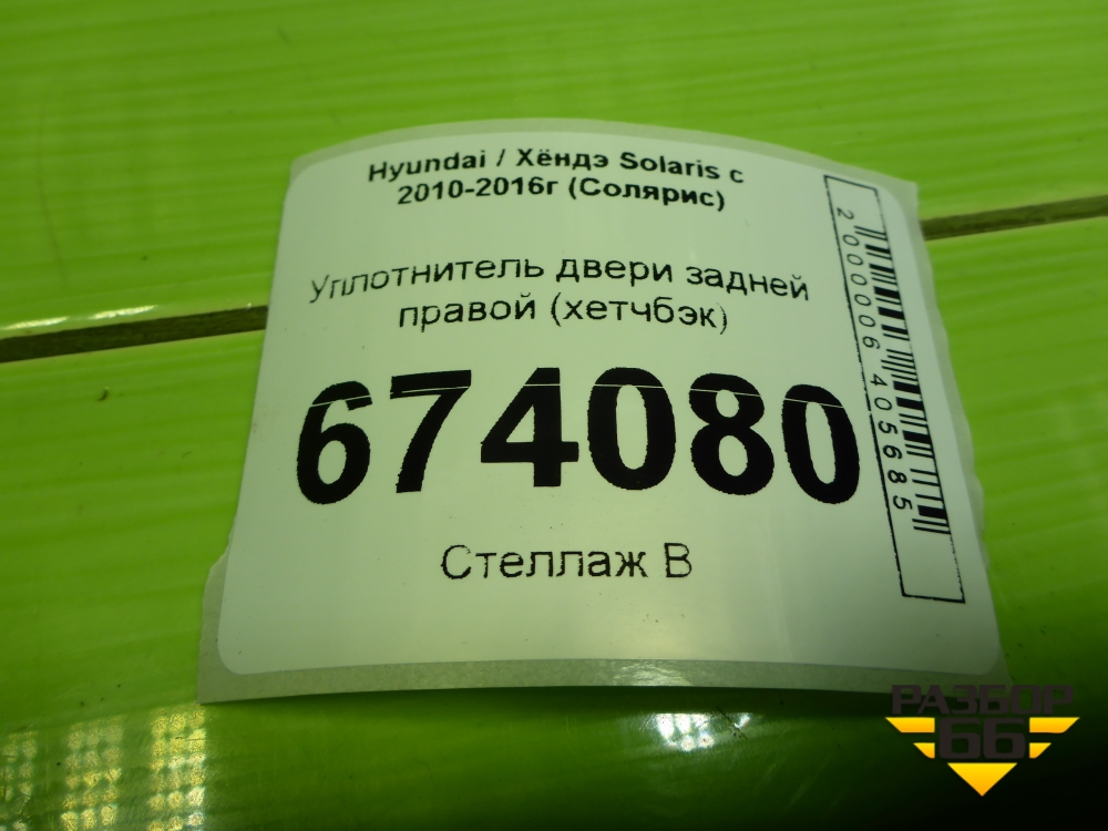 Уплотнитель двери задней правой (хетчбэк) для Hyundai Solaris с 2010-2016г (Солярис) в Перми