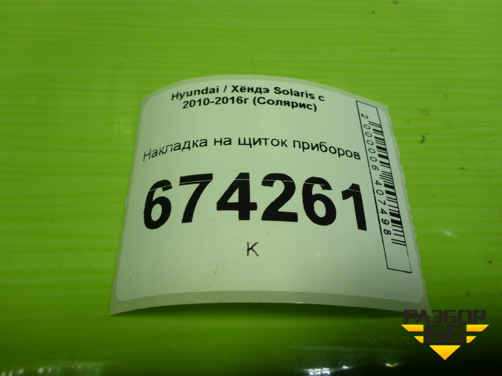 Накладка на щиток приборов (848314L000) для Hyundai Solaris с 2010-2016г (Солярис) в Перми