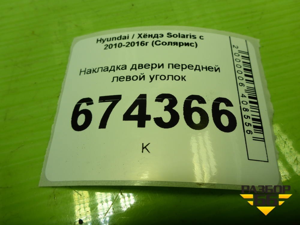Накладка двери передней левой уголок (876501R010) для Hyundai Solaris с 2010-2016г (Солярис) в Перми