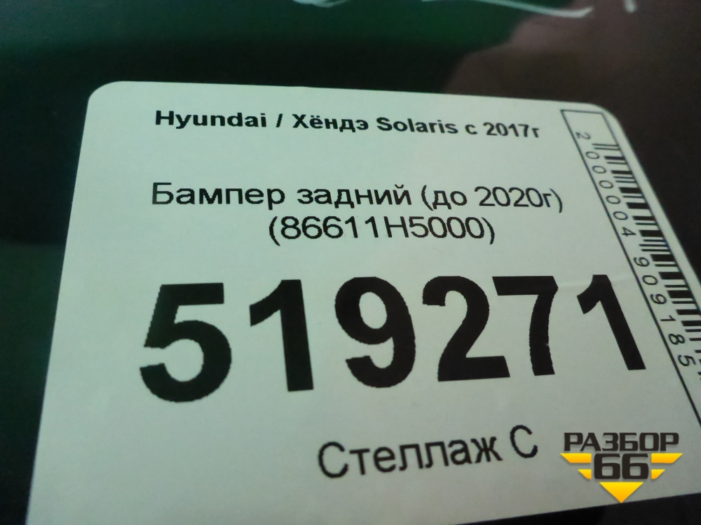 Бампер задний (до 2020г) (86611H5000) для Hyundai Solaris с 2017г (Солярис) в Перми