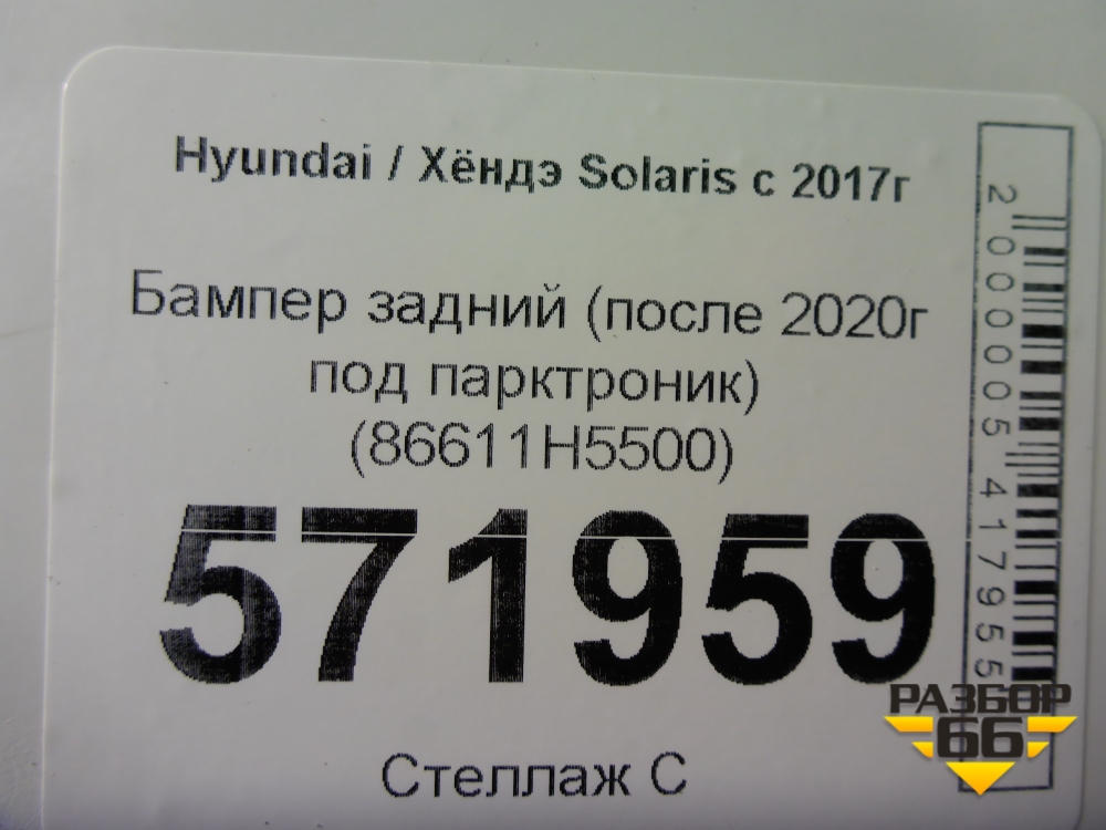 Бампер задний (после 2020г под парктроник) (86611H5500) для Hyundai Solaris с 2017г (Солярис) в Перми