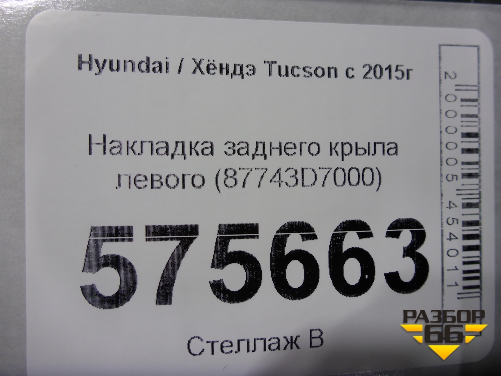 Накладка заднего крыла левого (87743D7000) для Hyundai Tucson с 2015-2022г (Туксон) в Перми