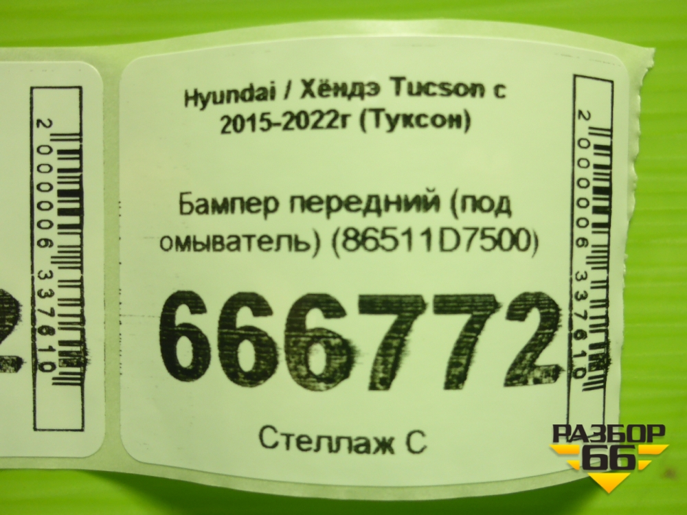 Бампер передний (под омыватель) (86511D7500) для Hyundai Tucson с 2015-2022г (Туксон) в Перми