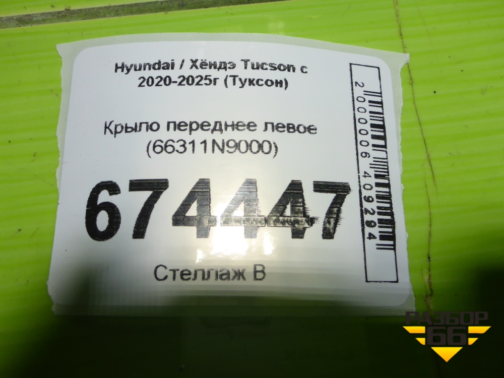 Крыло переднее левое (66311N9000) для Hyundai Tucson с 2020-2025г (Туксон) в Перми
