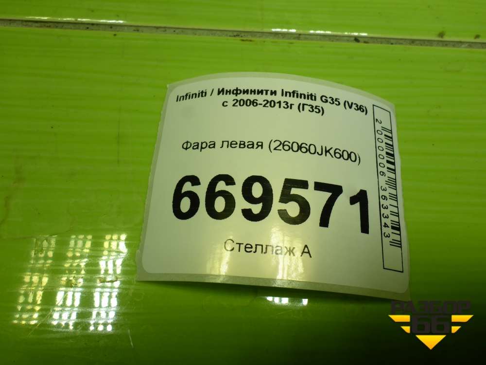 Фара левая (26060JK600) для Infiniti Infiniti G35 (V36) с 2006-2013г (Г35) в Перми