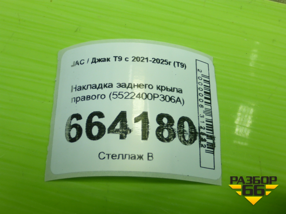 Накладка заднего крыла правого (5522400P306A) для JAC T9 с 2021-2025г (Т9) в Перми