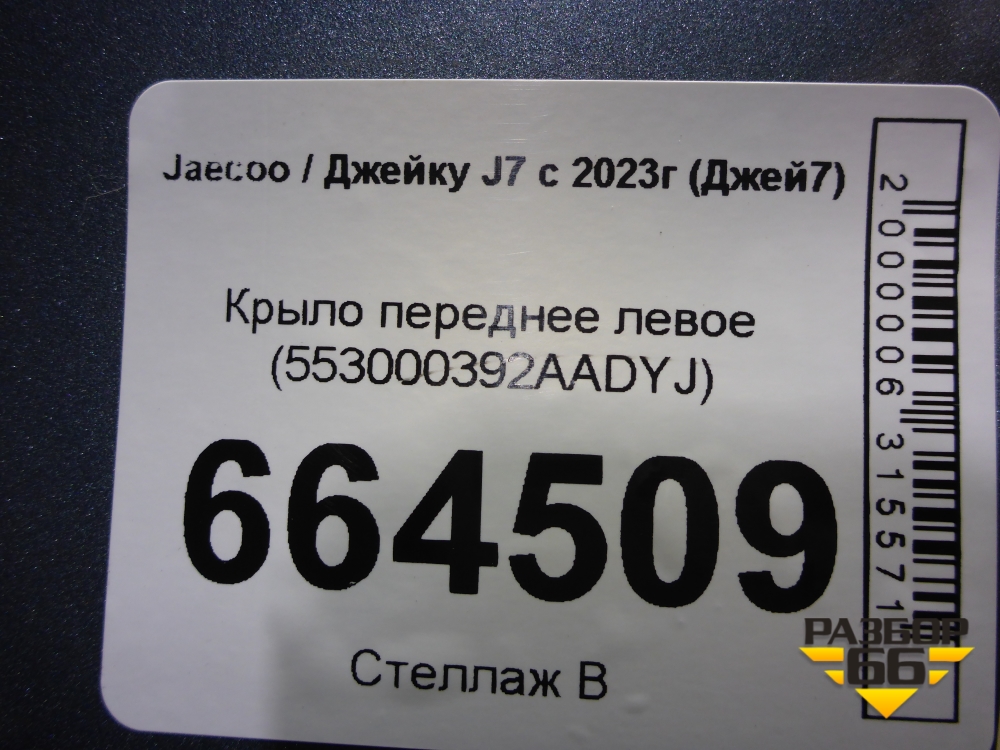 Крыло переднее левое (553000392AADYJ) для Jaecoo J7 с 2023г (Джей7) в Перми