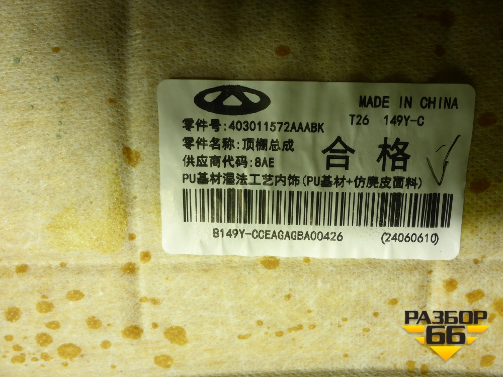 Обшивка потолка (403011572AAABK) для Jaecoo J8 c 2024г (Джей8) в Перми