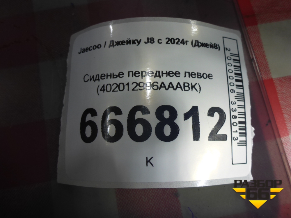 Сиденье переднее левое (402012996AAABK) для Jaecoo J8 c 2024г (Джей8) в Перми