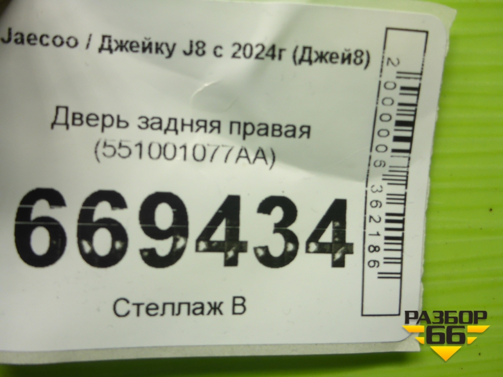 Дверь задняя правая (551001077AA) для Jaecoo J8 c 2024г (Джей8) в Перми