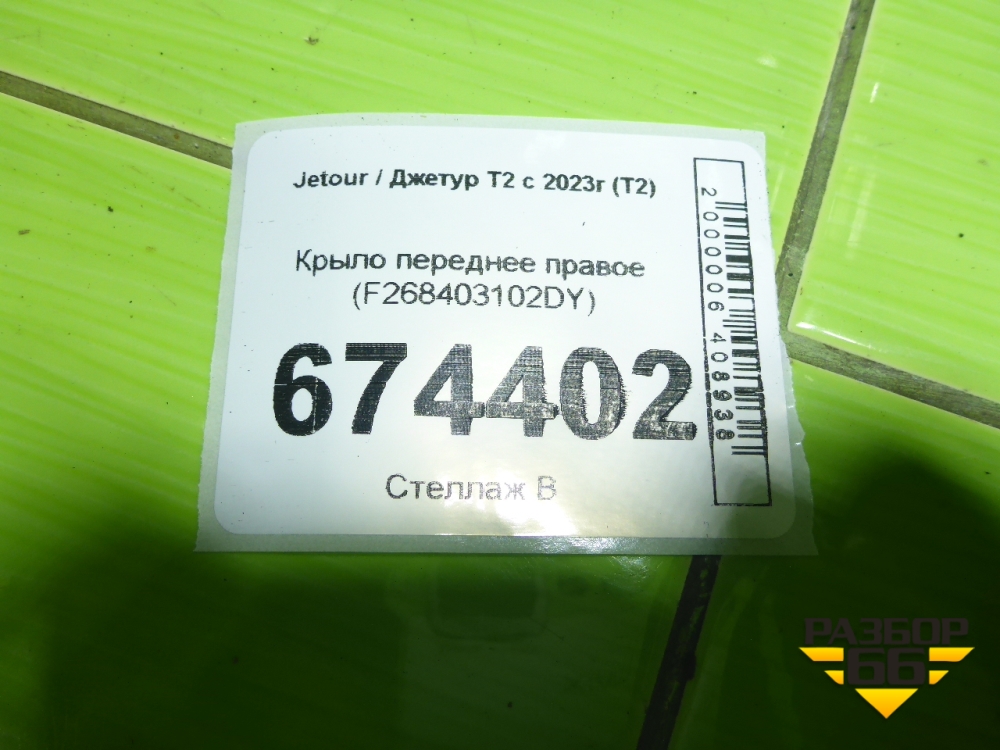 Крыло переднее правое (F268403102DY) для Jetour T2 с 2023г (Т2) в Перми