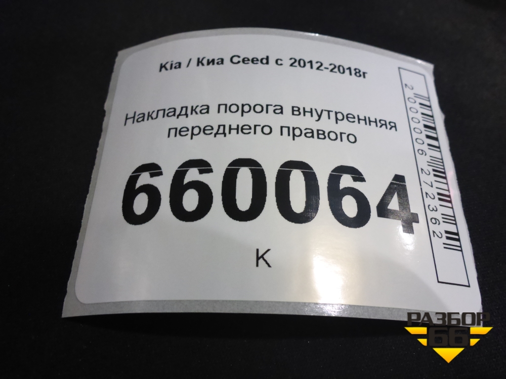 Накладка порога внутренняя переднего правого (5ти дверный кузов) (85881A2000) для Kia Ceed с 2012-2018г (Сид 2) в Перми
