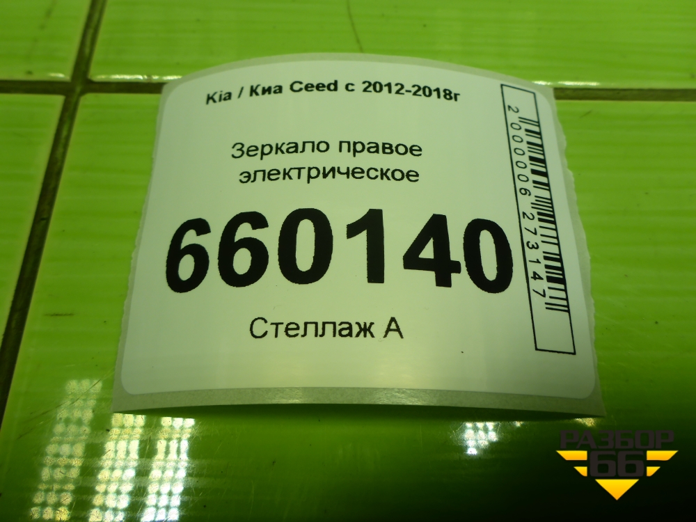 Зеркало правое электрическое (5 контактов) для Kia Ceed с 2012-2018г (Сид 2) в Перми