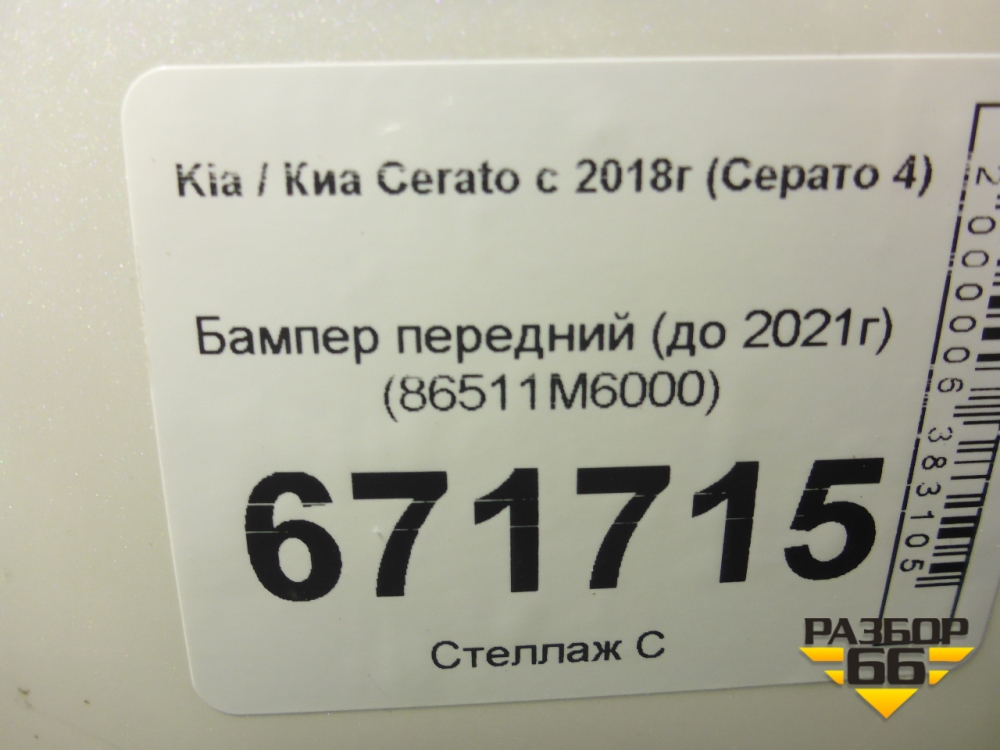 Бампер передний (до 2021г) (86511M6000) для Kia Cerato с 2018г (Серато 4) в Перми