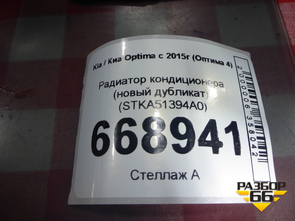 Радиатор кондиционера (новый дубликат) (STKA51394A0) для Kia Optima с 2015г (Оптима 4) в Перми