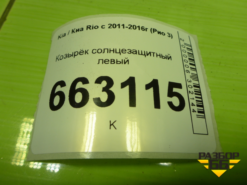 Козырёк солнцезащитный левый для Kia Rio с 2011-2016г (Рио 3) в Перми