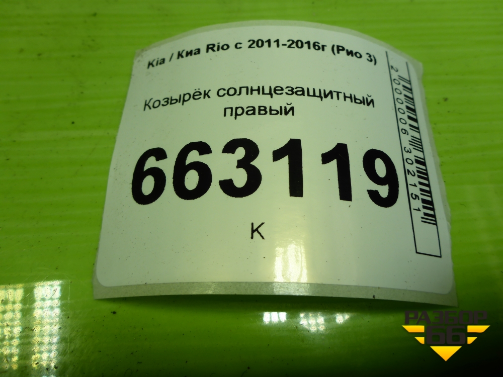 Козырёк солнцезащитный правый для Kia Rio с 2011-2016г (Рио 3) в Перми