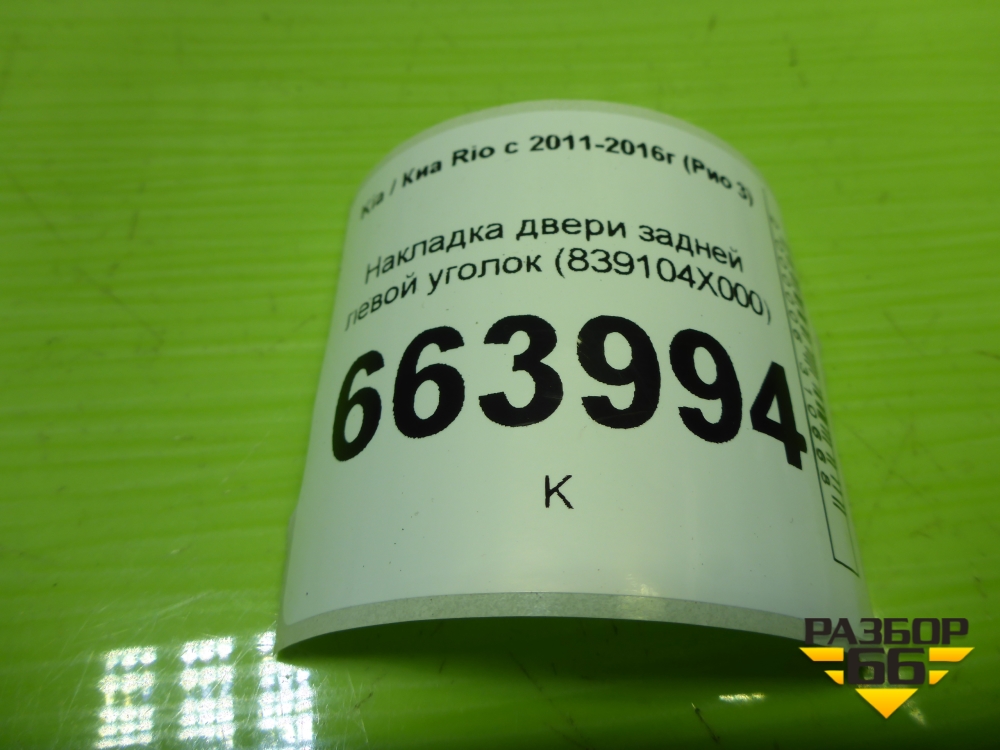 Накладка двери задней левой уголок (839104X000) для Kia Rio с 2011-2016г (Рио 3) в Перми