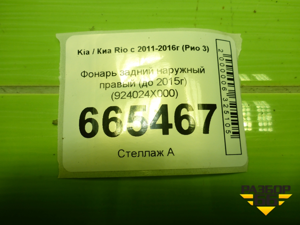 Фонарь задний наружный правый (до 2015г) (924024X000) для Kia Rio с 2011-2016г (Рио 3) в Перми