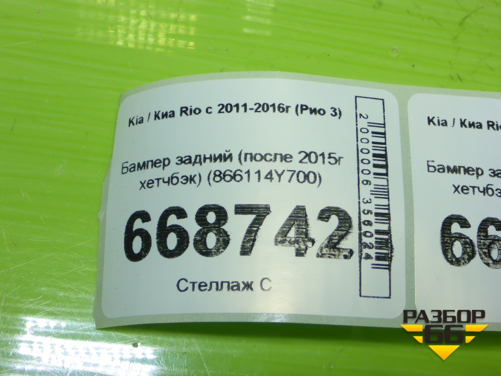 Бампер задний (после 2015г хетчбэк) (866114Y700) для Kia Rio с 2011-2016г (Рио 3) в Перми