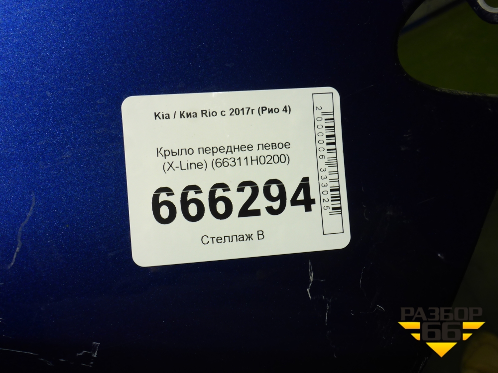 Крыло переднее левое (X-Line) (66311H0200) для Kia Rio с 2017г (Рио 4) в Перми