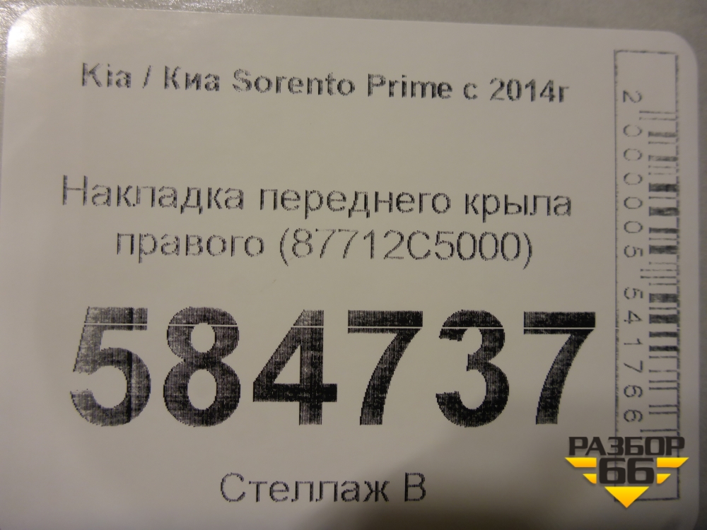 Накладка переднего крыла правого (87712C5000) для Kia Sorento III Prime с 2014-2020г (Соренто3) в Перми