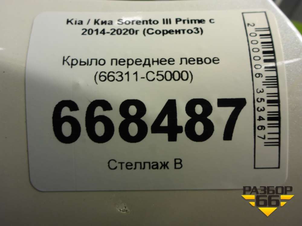 Крыло переднее левое (66311-C5000) (66311C5000) для Kia Sorento III Prime с 2014-2020г (Соренто3) в Перми