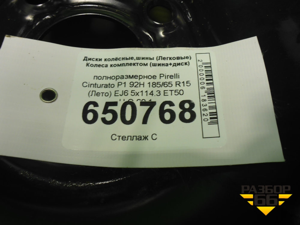 Запасное колесо полноразмерное Pirelli Cinturato P1 92H 185/65 R15 (Лето) EJ6 5x114.3 ET50 Ц.О.60,1 в Перми