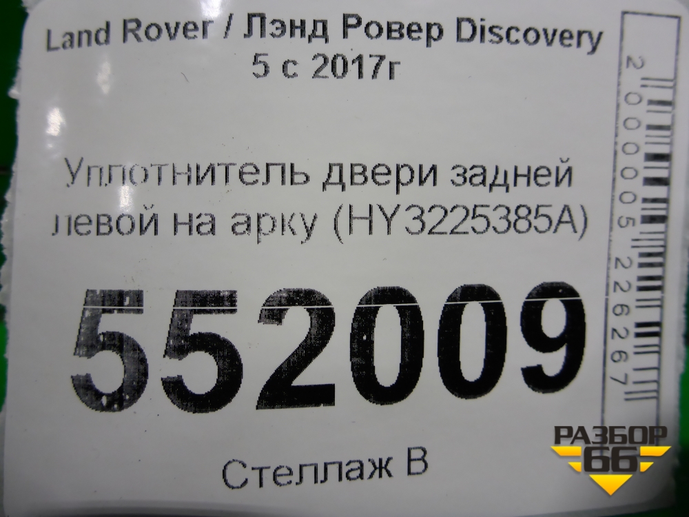 Уплотнитель двери задней левой на арку (HY3225385A) для Land Rover Discovery 5 с 2017г (Дискавери) в Перми