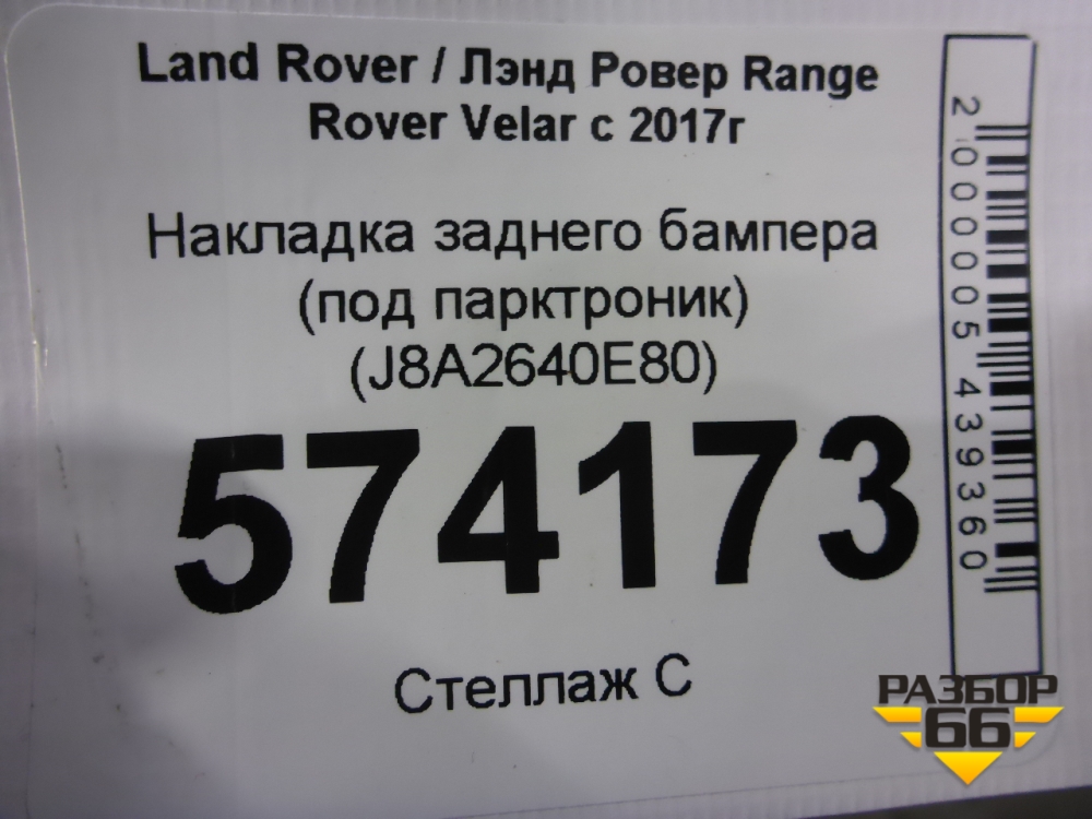 Накладка заднего бампера (под парктроник) (J8A2640E80) для Land Rover Range Rover Velar с 2017г (Велар) в Перми
