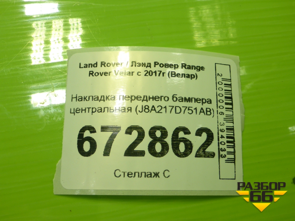 Накладка переднего бампера центральная (J8A217D751AB) для Land Rover Range Rover Velar с 2017г (Велар) в Перми