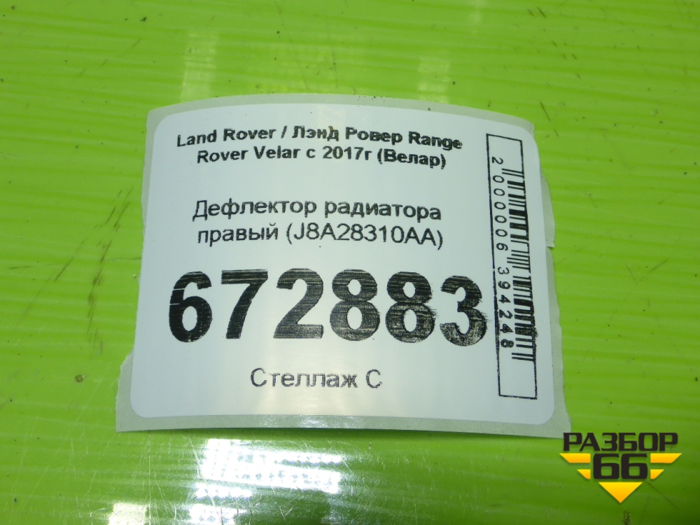 Дефлектор радиатора правый (J8A28310AA) для Land Rover Range Rover Velar с 2017г (Велар) в Перми