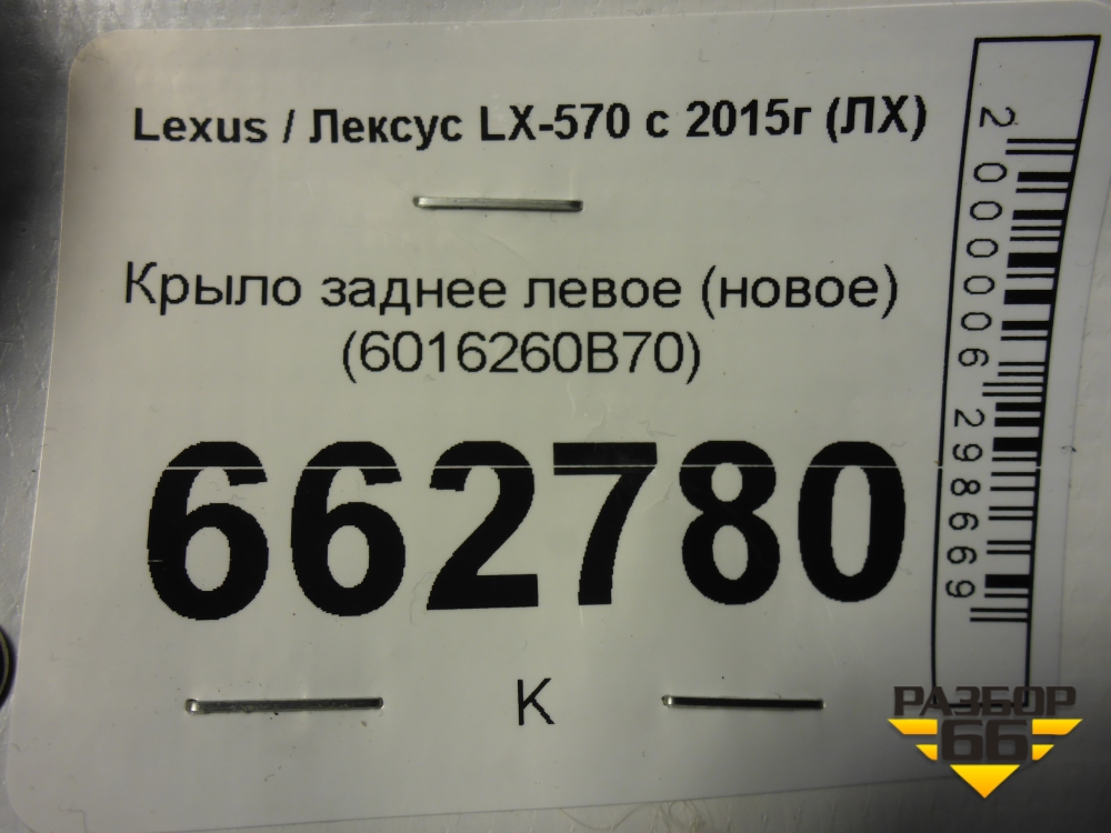 Крыло заднее левое (новое) (6016260B70) для Lexus LX-570 с 2015г (ЛХ) в Перми
