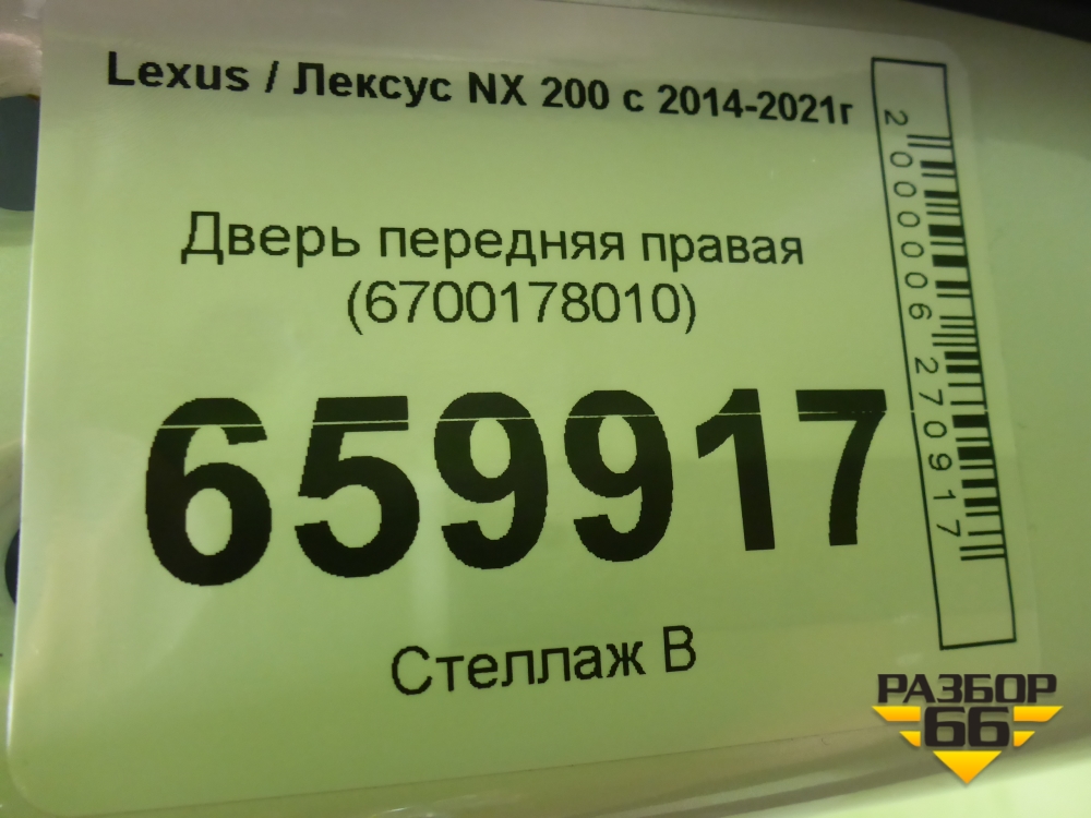 Дверь передняя правая (6700178010) для Lexus NX 200 с 2014-2021г (НХ) в Перми
