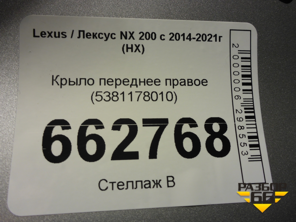 Крыло переднее правое (5381178010) для Lexus NX 200 с 2014-2021г (НХ) в Перми