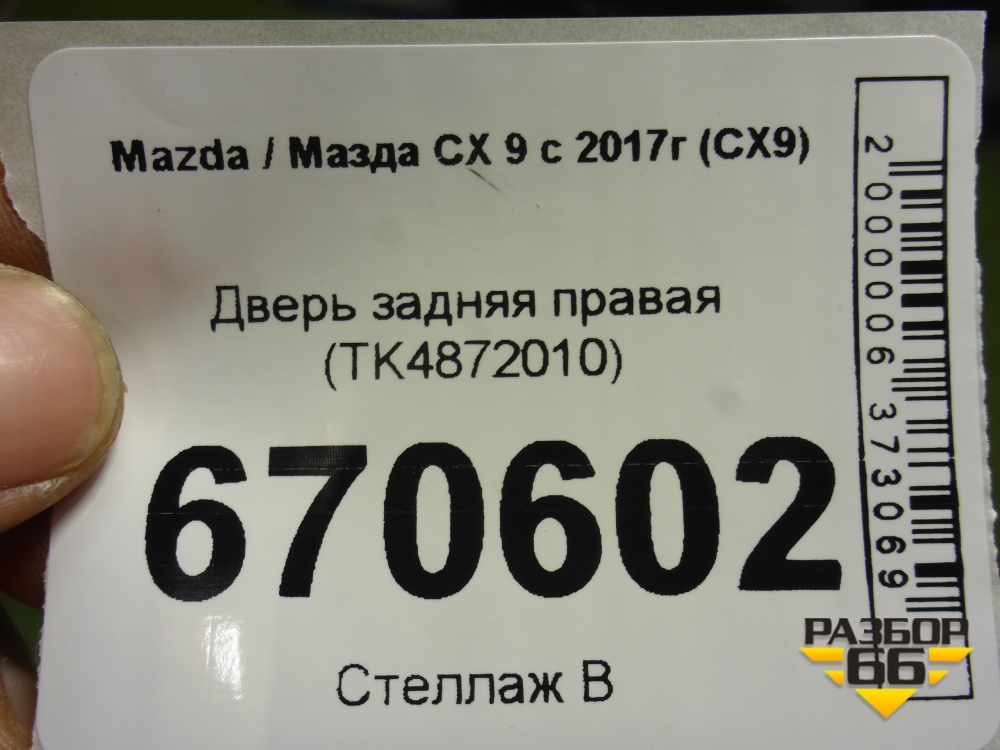 Дверь задняя правая (TK4872010) для Mazda CX 9 с 2017г (СХ9) в Перми