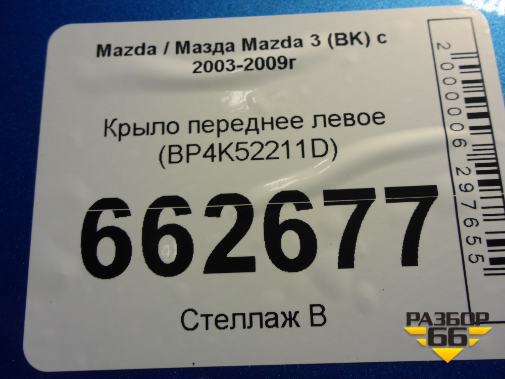 Крыло переднее левое (BP4K52211D) для Mazda Mazda 3 (BK) с 2003-2009г в Перми