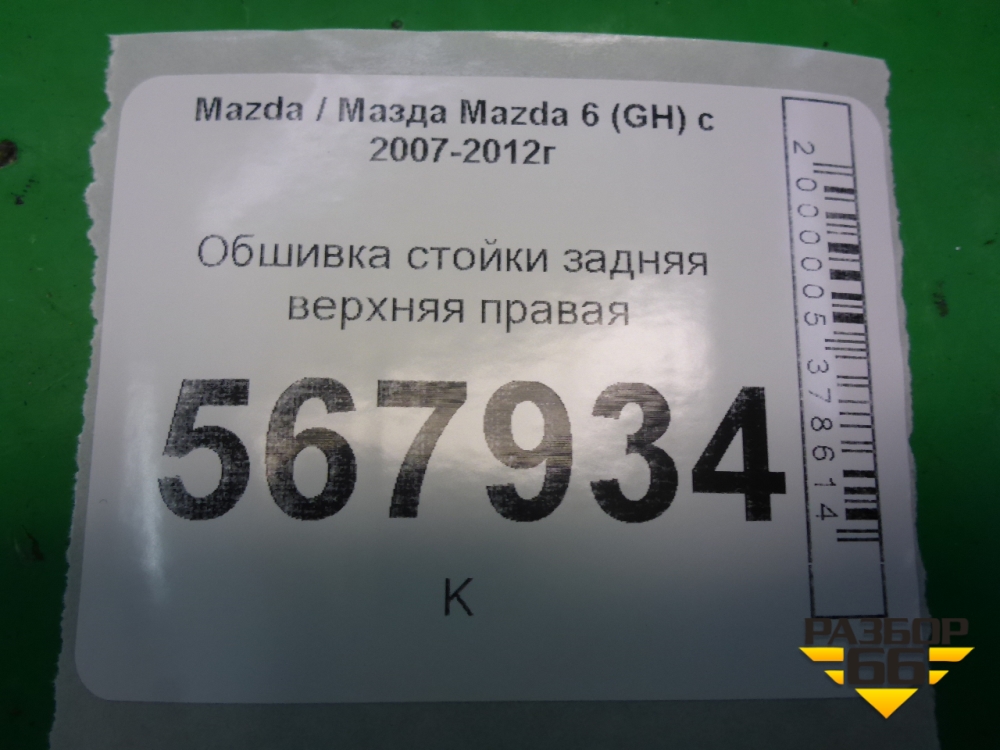 Обшивка стойки задняя верхняя правая (седан) (GS1D68250) для Mazda Mazda 6 (GH) с 2007-2012г в Перми