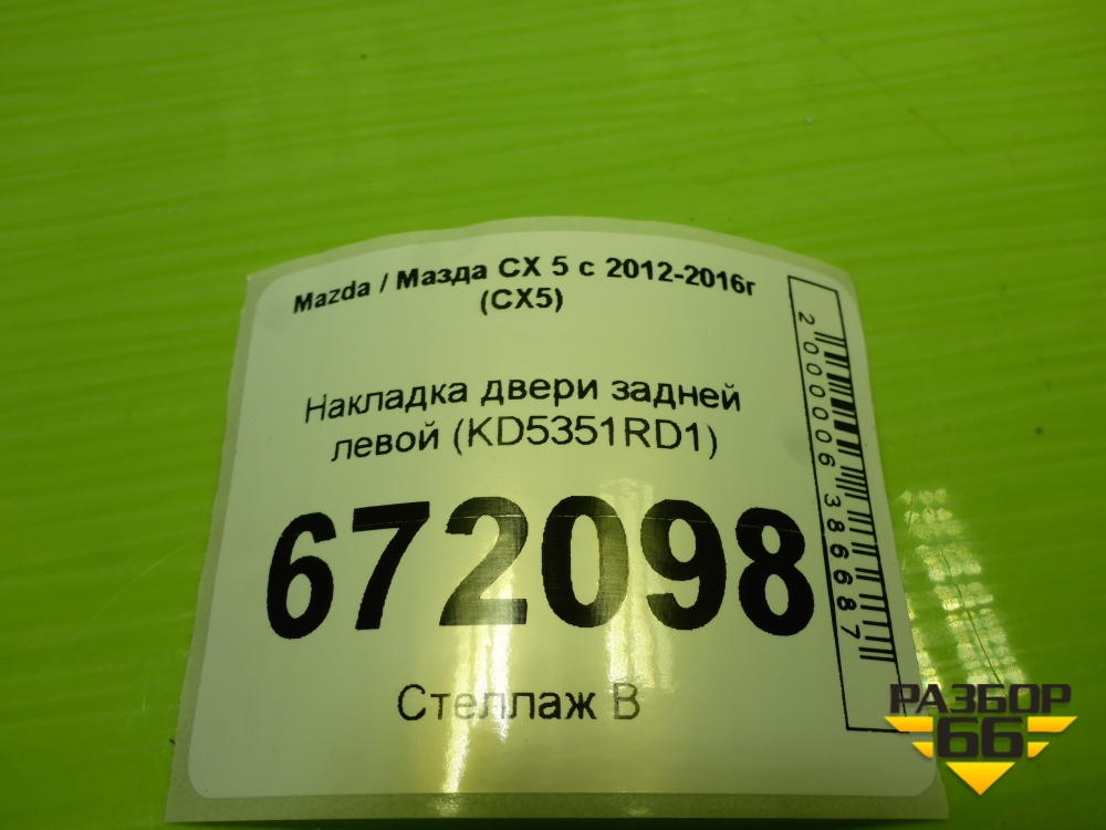 Накладка двери задней левой (KD5351RD1) для Mazda CX 5 с 2012-2016г (СХ5) в Перми
