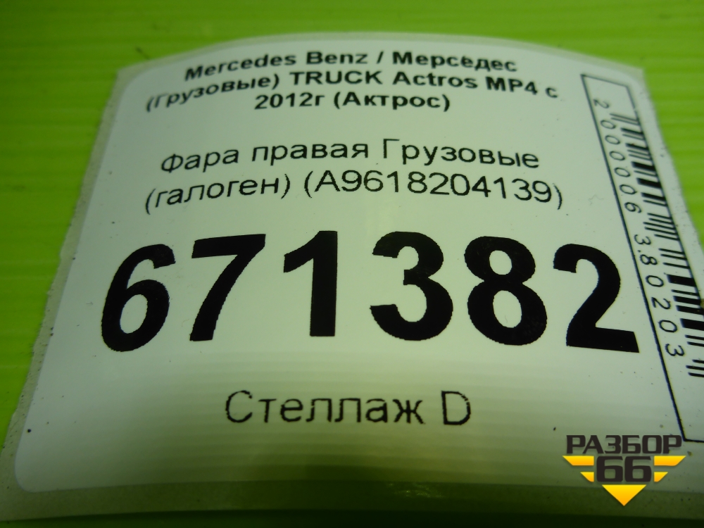 Фара правая (галоген) (A9618204139) для Mercedes Benz TRUCK Actros MP4 с 2012г (Актрос) в Перми