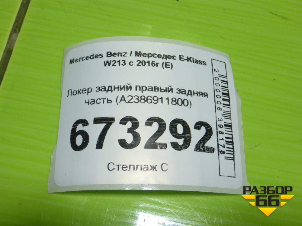 Локер задний правый задняя часть (A2386911800) для Mercedes Benz E-Klass W213 с 2016г (Е) в Перми