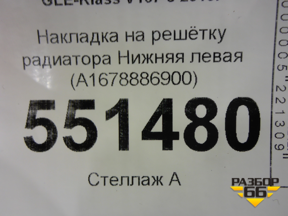 Накладка на решетку радиатора Нижняя левая (A1678886900) для Mercedes Benz GLE-Klass V167 с 2018г (ГЛЕ) в Перми