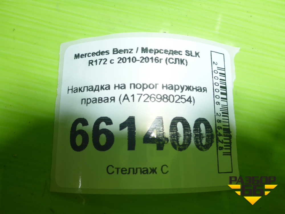 Накладка на порог наружная правая (A1726980254) для Mercedes Benz SLK R172 с 2010-2016г (СЛК) в Перми
