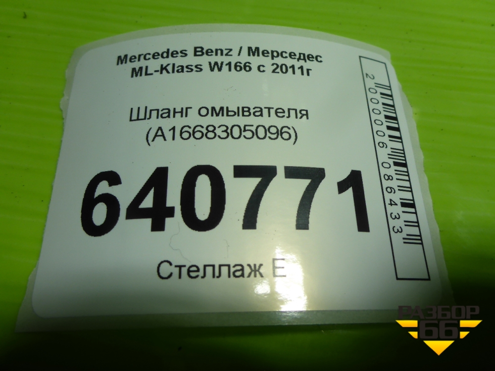 Шланг омывателя (A1668305096) для Mercedes Benz ML-Klass W166 c 2011г (МЛ) в Перми