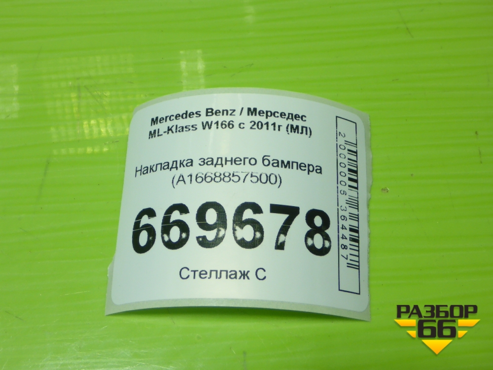 Накладка заднего бампера (A1668857500) для Mercedes Benz ML-Klass W166 c 2011г (МЛ) в Перми