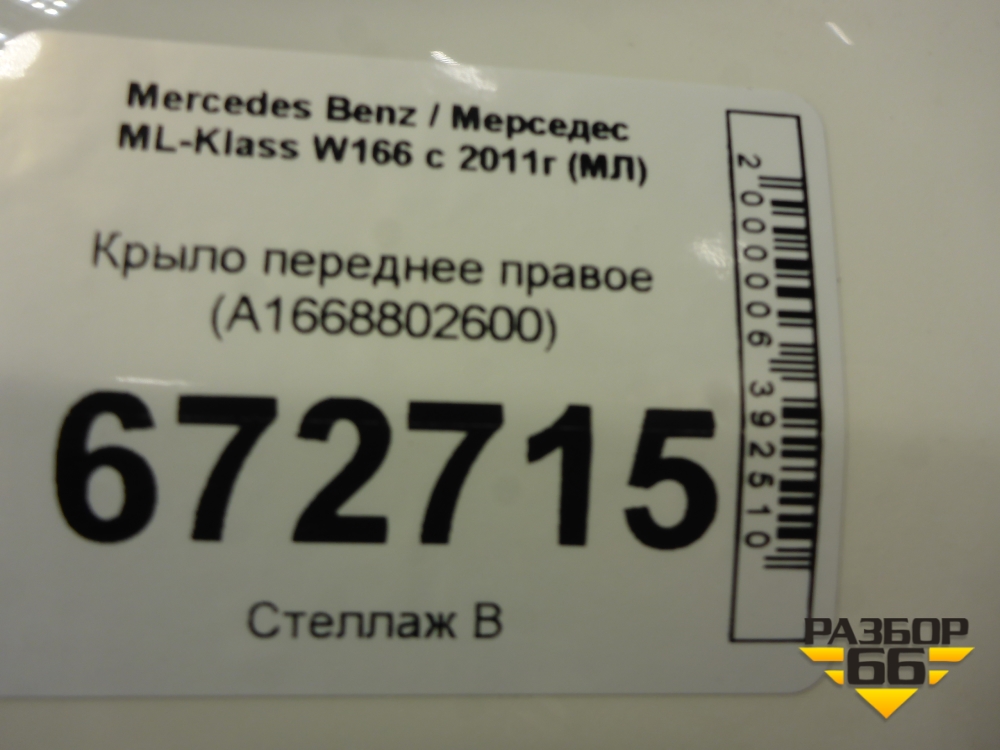 Крыло переднее правое (A1668802600) для Mercedes Benz ML-Klass W166 c 2011г (МЛ) в Перми