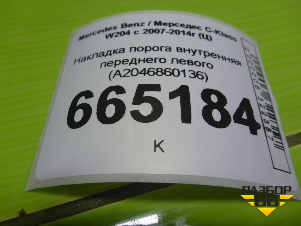 Накладка порога внутренняя переднего левого (A2046860136) для Mercedes Benz C-Klass W204 с 2007-2014г (Ц) в Перми