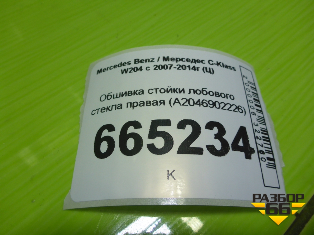 Обшивка стойки лобового стекла правая (A2046902226) для Mercedes Benz C-Klass W204 с 2007-2014г (Ц) в Перми
