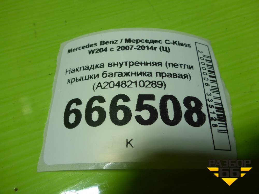 Накладка внутренняя (петли крышки багажника правая) (A2048210289) для Mercedes Benz C-Klass W204 с 2007-2014г (Ц) в Перми