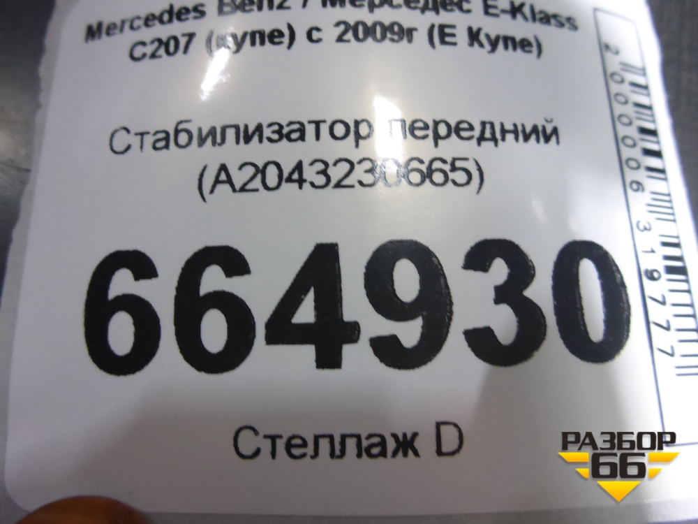 Стабилизатор передний (A2043230665) для Mercedes Benz E-Klass C207 (купе) с 2009г (Е Купе) в Перми